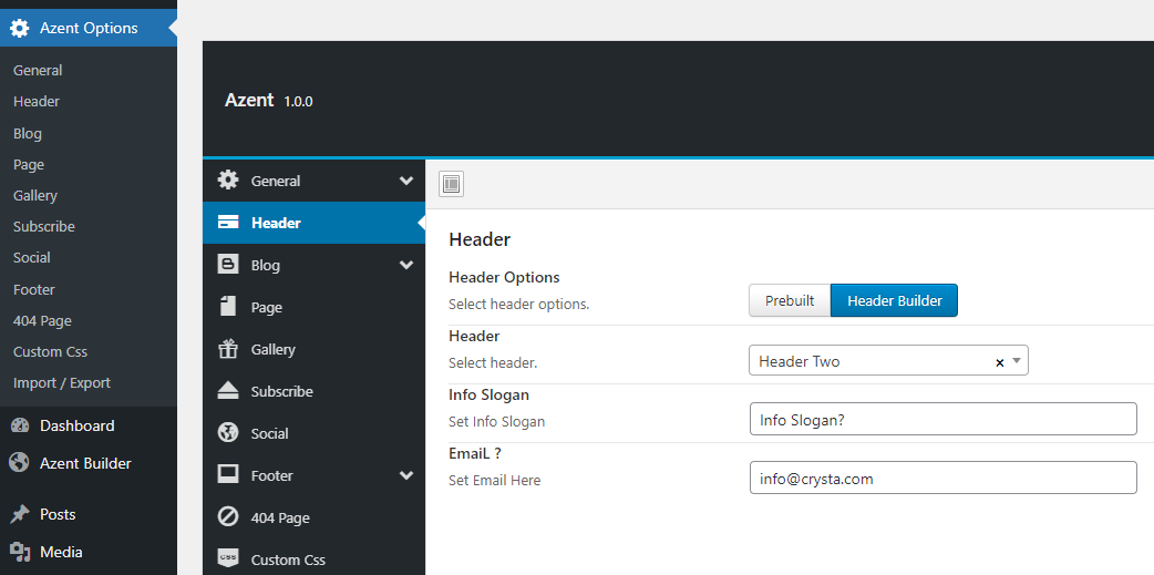 Azent used Redux Framwork Plugin for Theme Options. All options are easily readable and configurable.It's very easy to use.