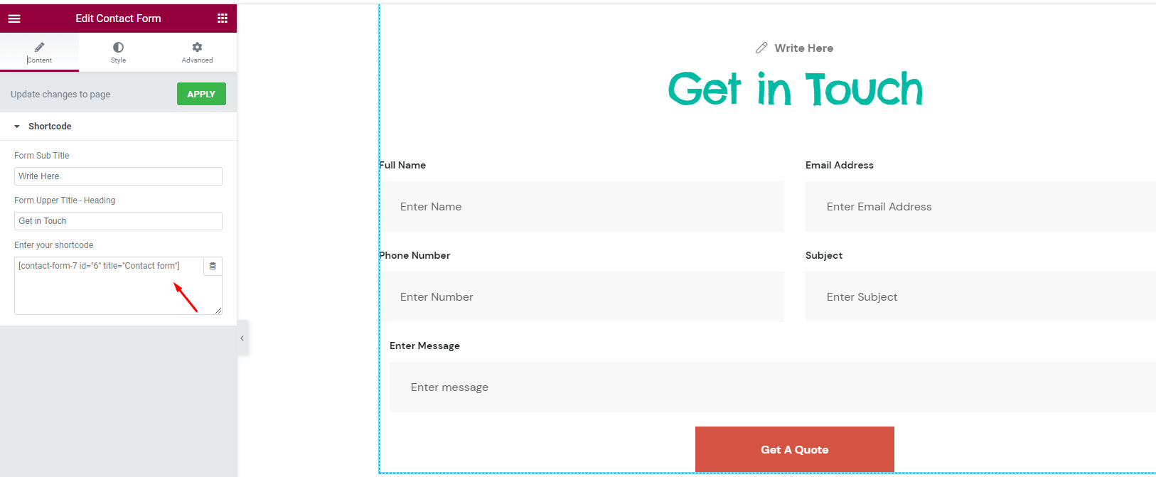 Contact Form 7 Short Code