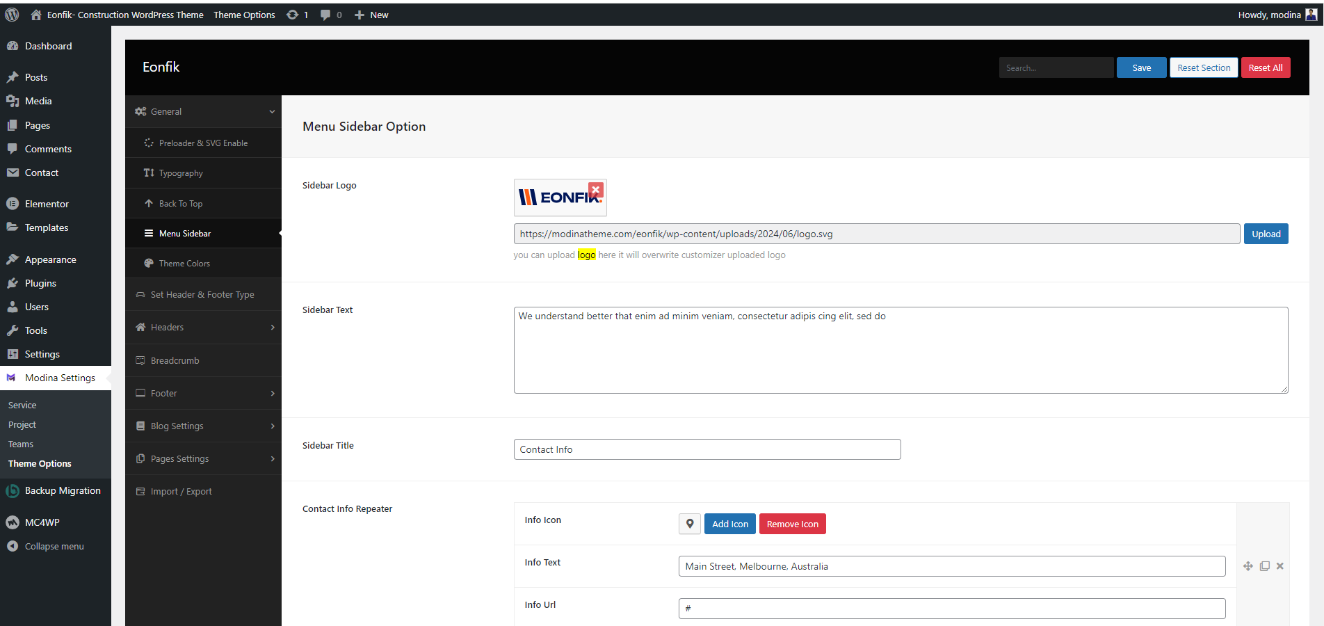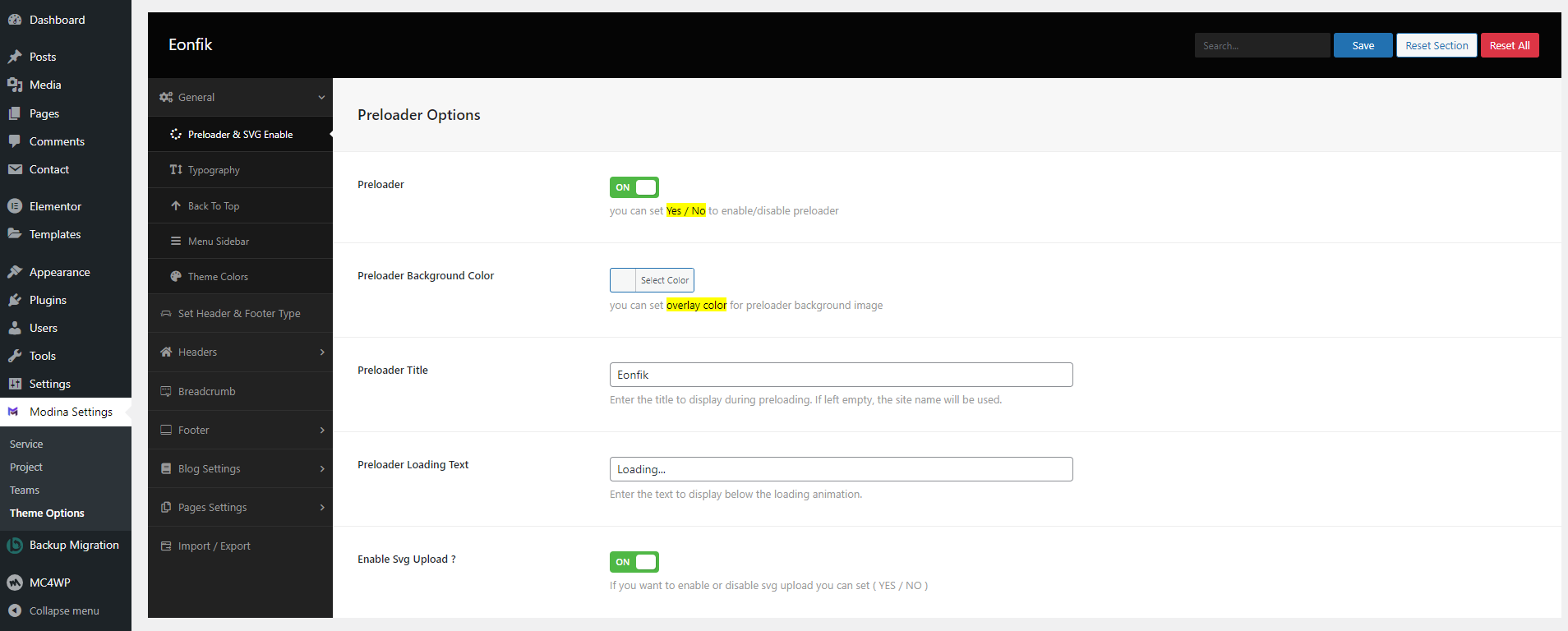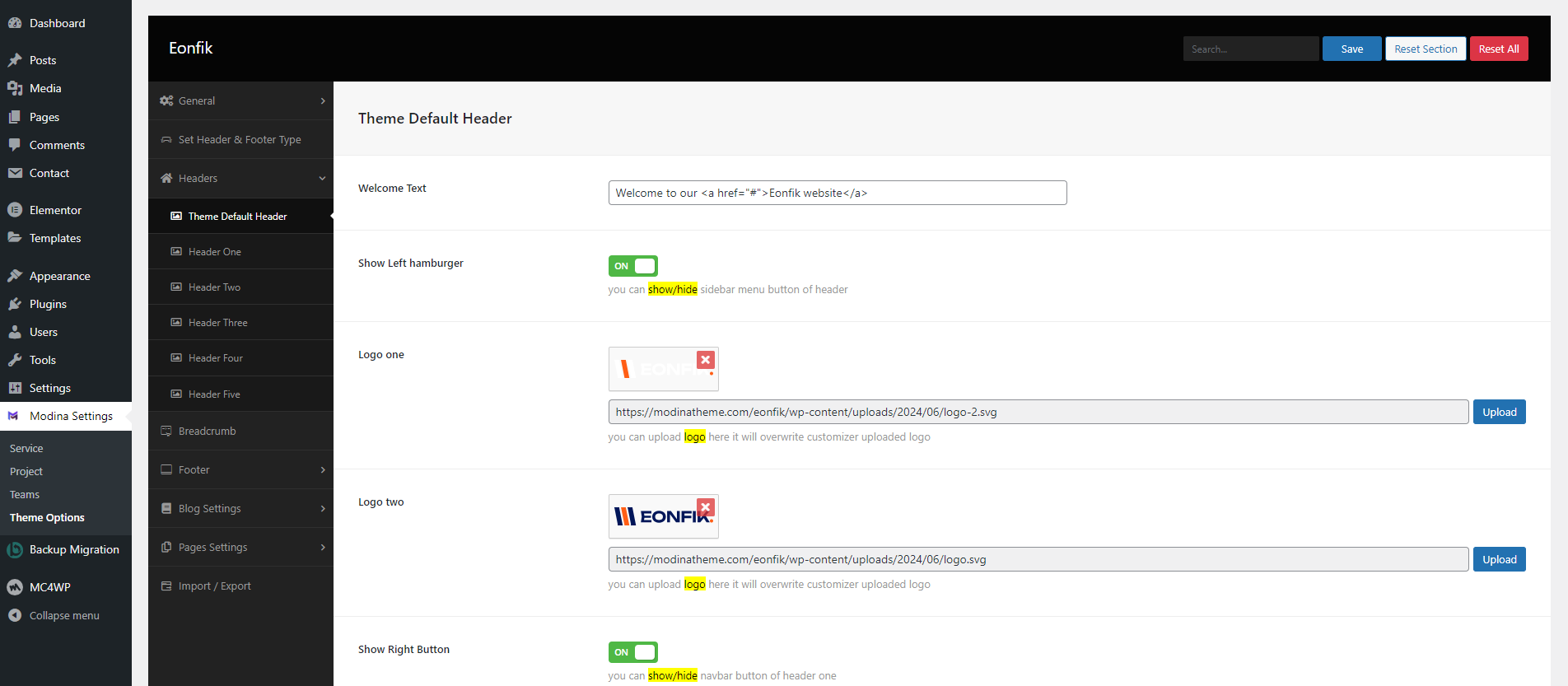 eonfik used Codestar Framework Plugin for Theme Options. All options are easily readable and configurable.It's very easy to use.