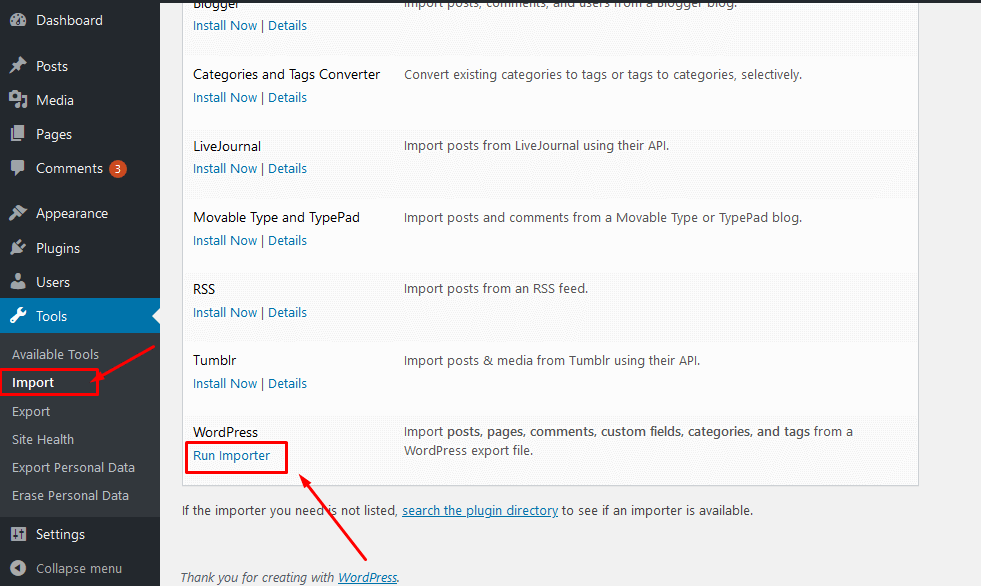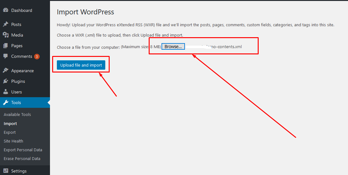 For more information about importing content in WordPress; click here