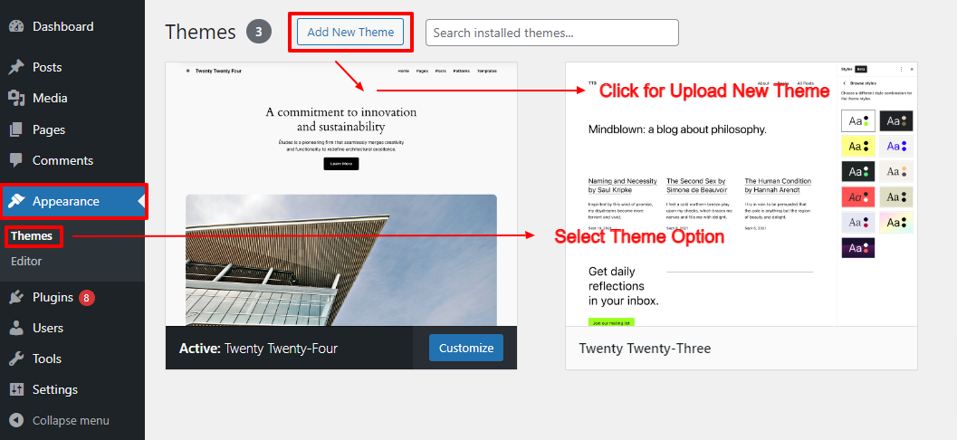 After successful theme installation, you'll see the above notice box that you need to install essential plugins. You can click on "Begin installing plugins" or follow the following step.