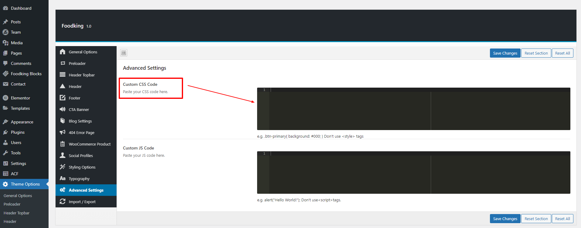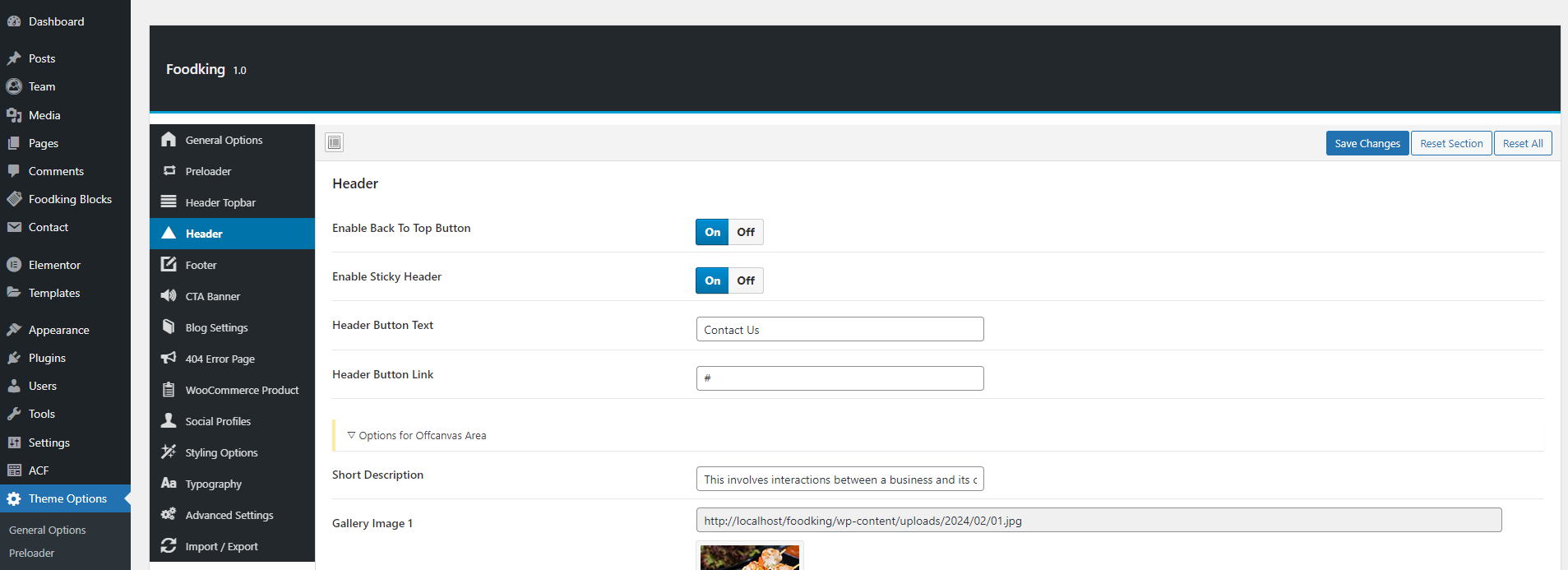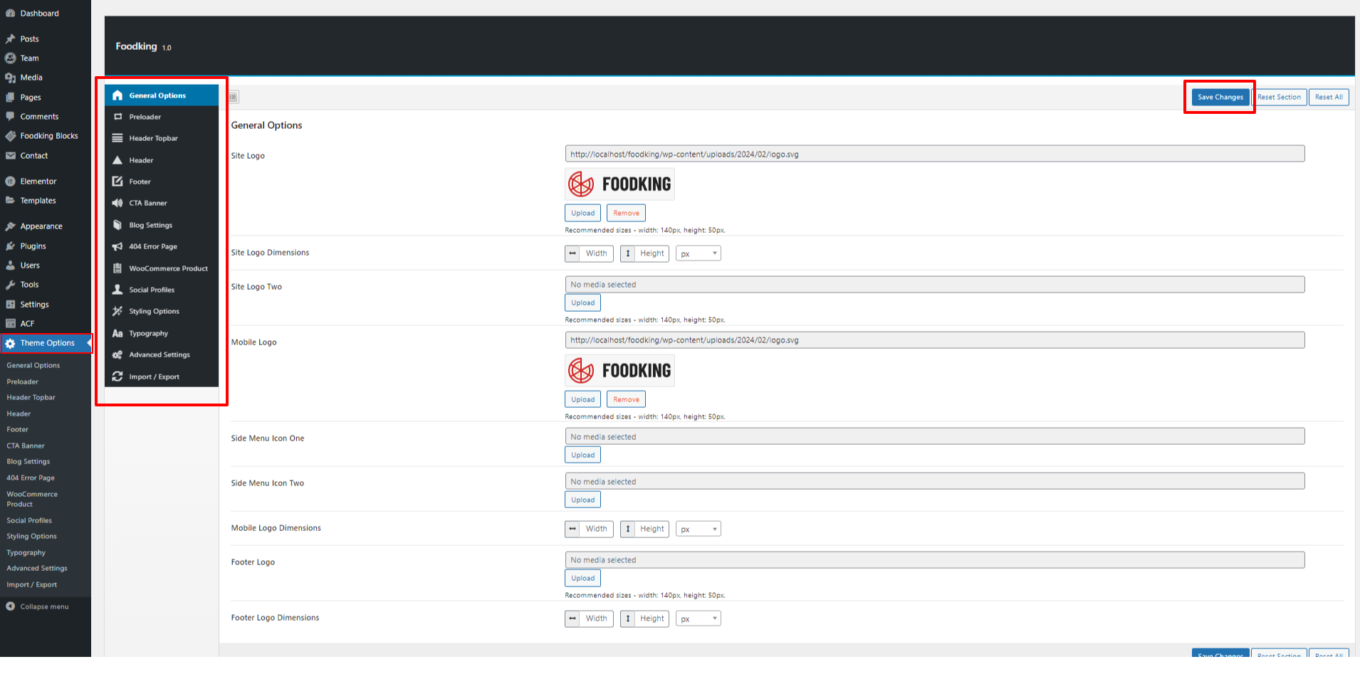 Foodking used Redux Framwork Plugin for Theme Options. All options are easily readable and configurable.It's very easy to use.
