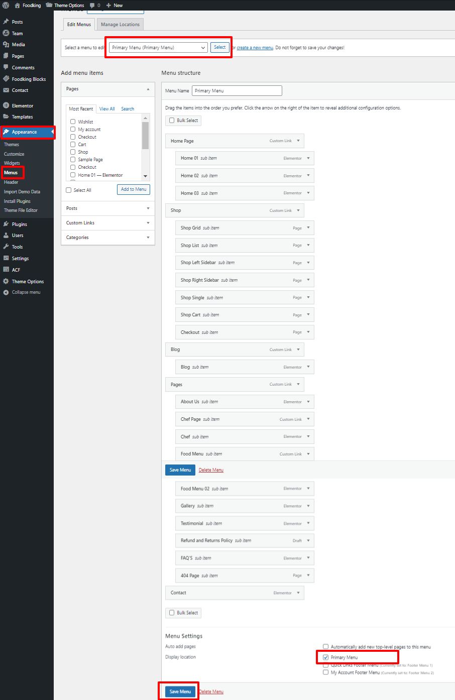 Its an important part of foodking Theme Installation process. Select your menu for menu location. Go to Dashboard-> Appearance-> Menus then click on Manage Location and select menu for 2 locations. menu for "Primary Menu"? location is mandatory. You can follow below screenshot.